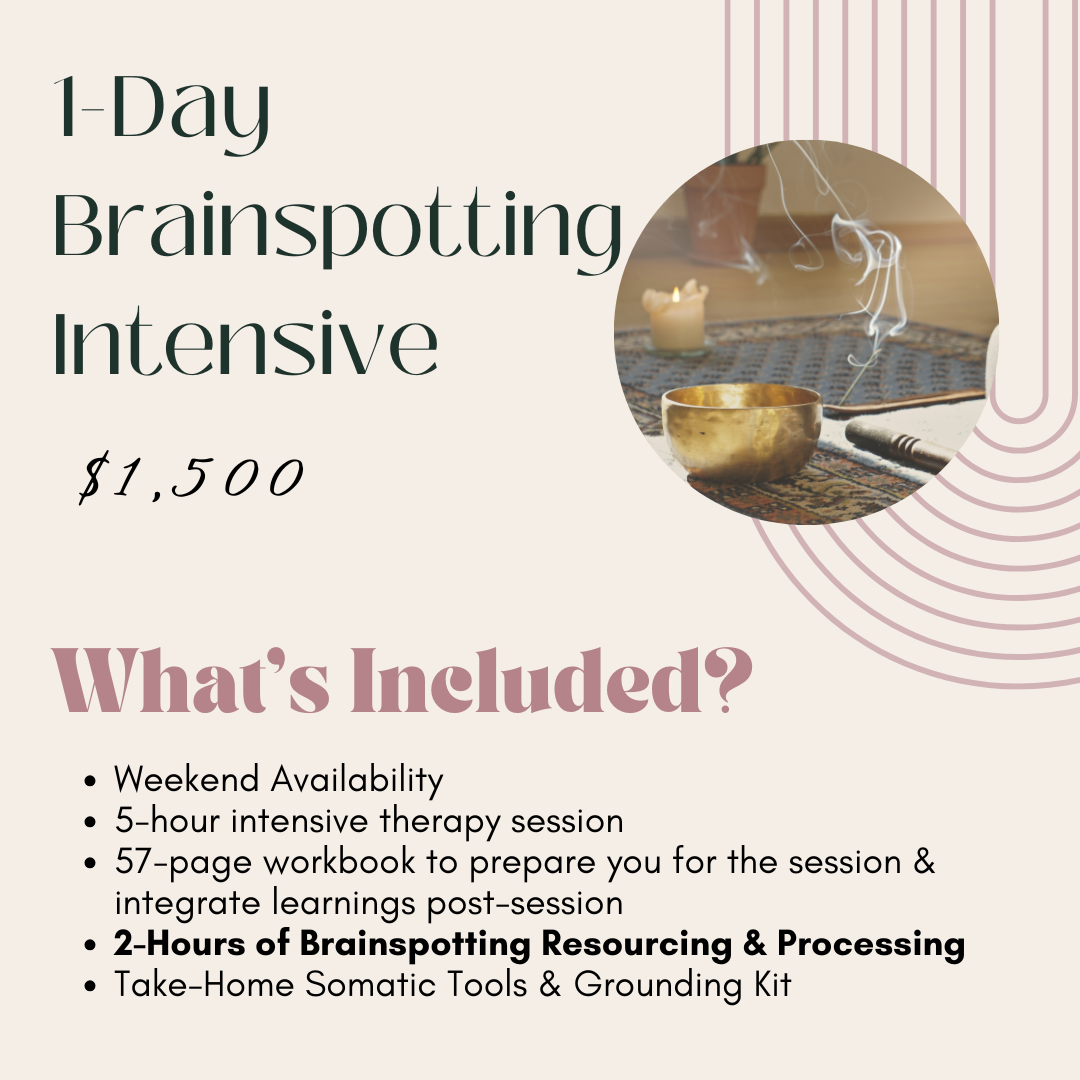 A 1-Day Intensive is often a good choice if you’d like to focus on healing around a single issue, or if you’ve worked with somatic therapy modalities such as EMDR or Brainspotting before and want to deepen that work.